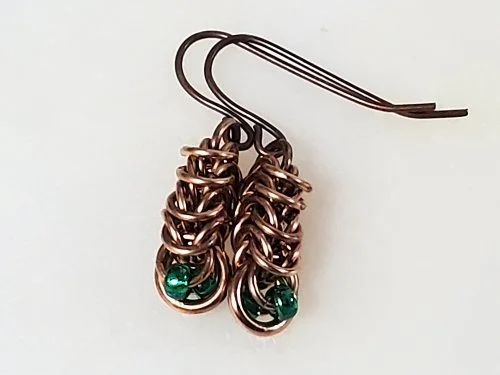 Sat. 11th @ 10:30 Chain Maille: Mini Box Earrings and Pendant-Workshop: *** Let’s challenge ourselves with this delicate Earring and Pendant set. Finish it with a sparkle of beads. Chain not included to allow maker’s choice, $25.00 ($22.99 + $2.01 tax).