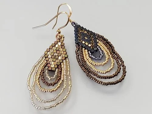 Tues. 14th @ 12:00 Symmetry Earrings-Workshop: ** Utilize Brick Stitch with cubes and seed beads to make a pair of drop earrings. All in for $25.00 ($22.99 + $2.01 tax).
